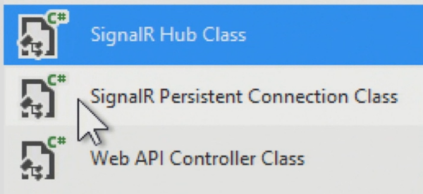 SignalR and now its been folded into the ASP.NET portfolio. There is a new file template in Visual Studio called the SignalR Hub class .